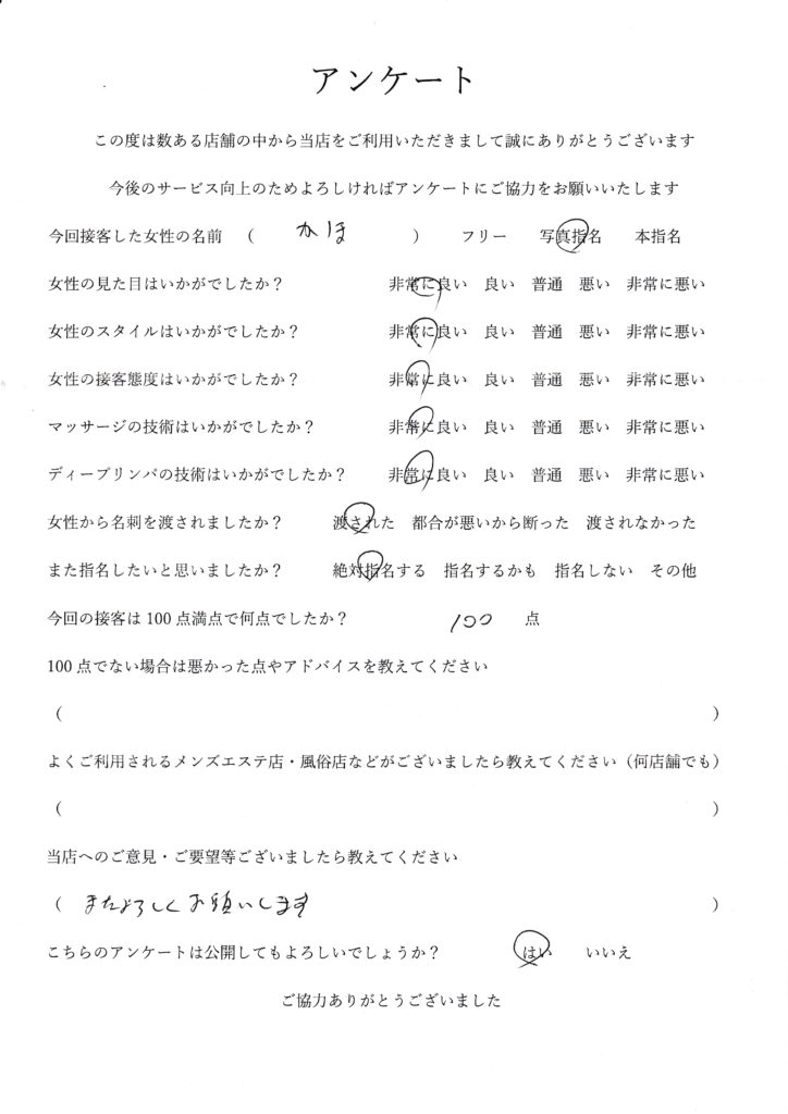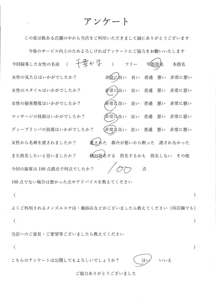 2025年11月15日千葉かほさんアンケート100点いただきました