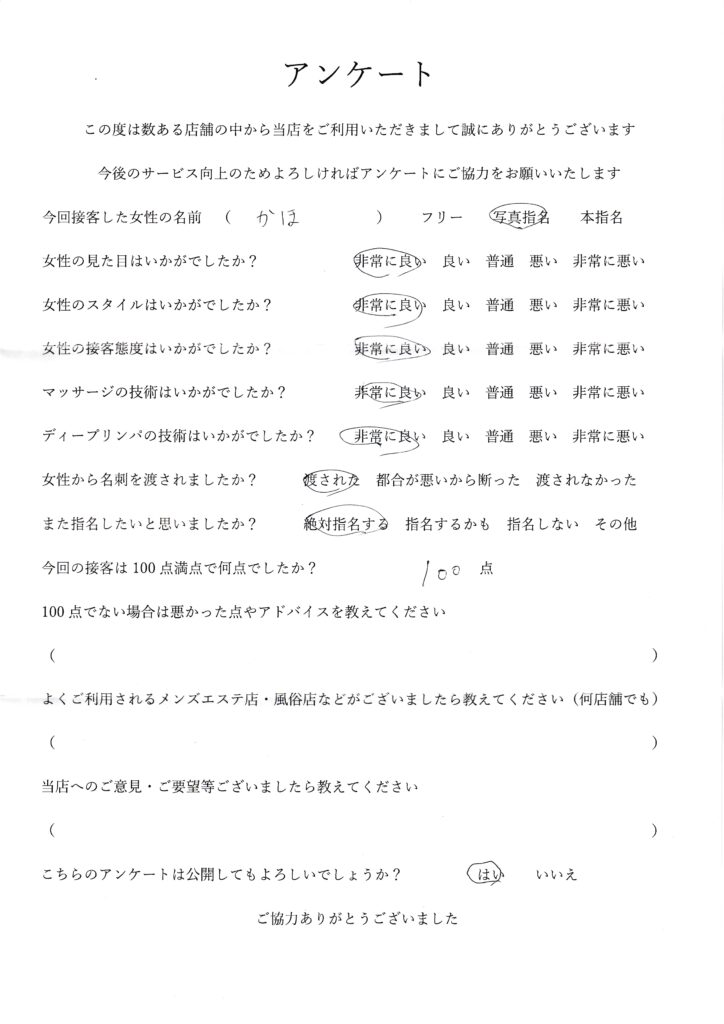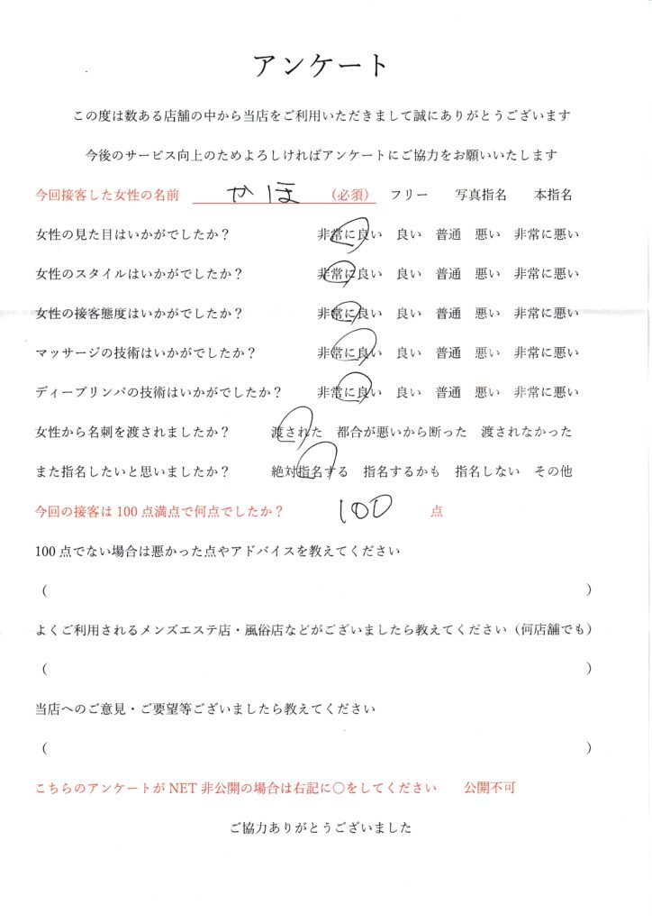 2025年11月8日千葉かほさんアンケート100点いただきました