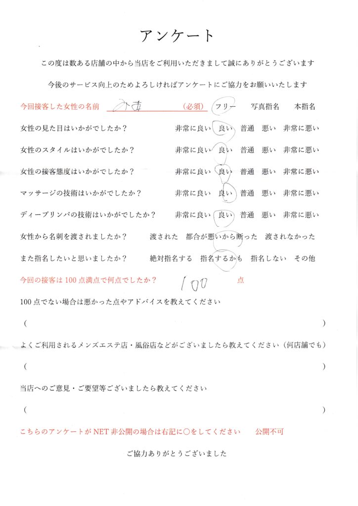 2024年12月20日吉田みあさんアンケート100点いただきました