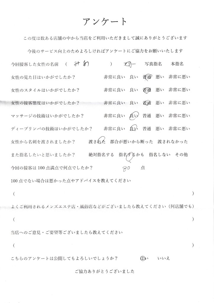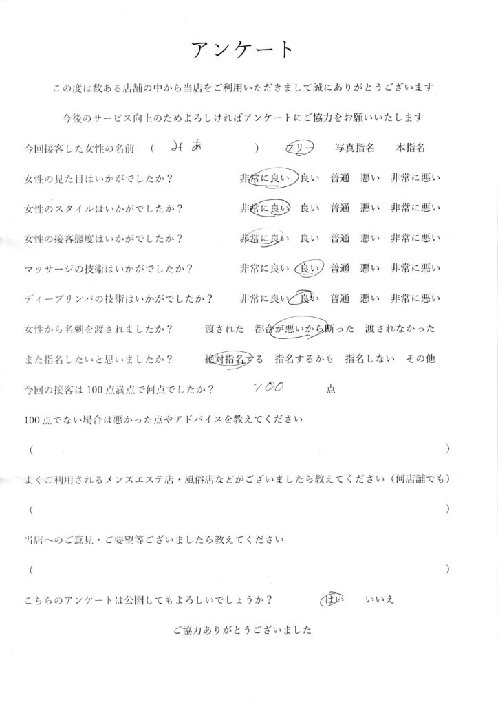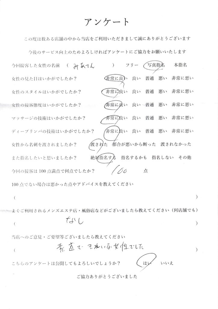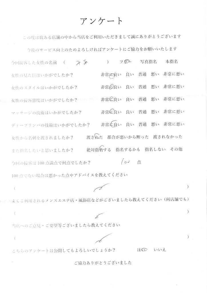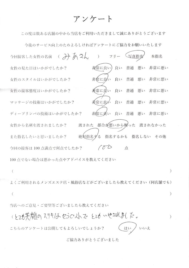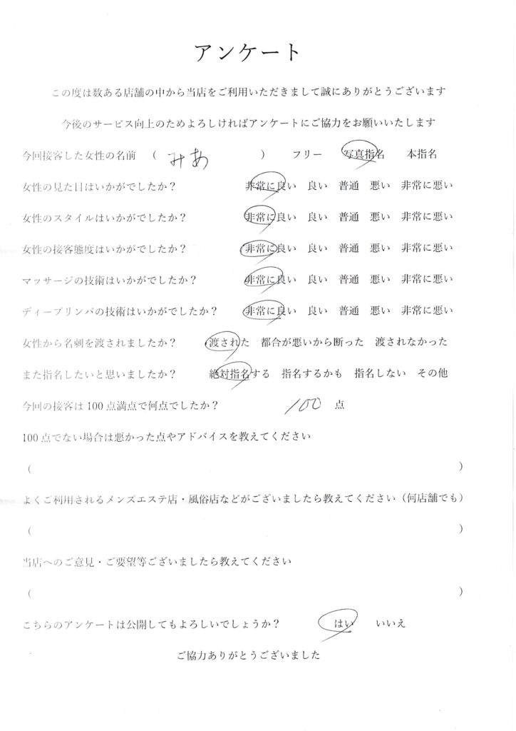 2024年4月20日吉田みあさんアンケート100点いただきました