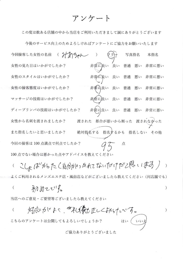 2024年5月2日吉田みあさんアンケート100点いただきました