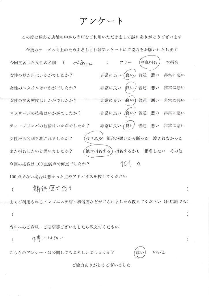 2024年5月11日吉田みあさんアンケート101点いただきました