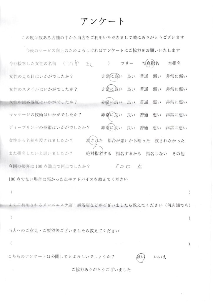 2024年5月31日野田りりかさんアンケート100点いただきました