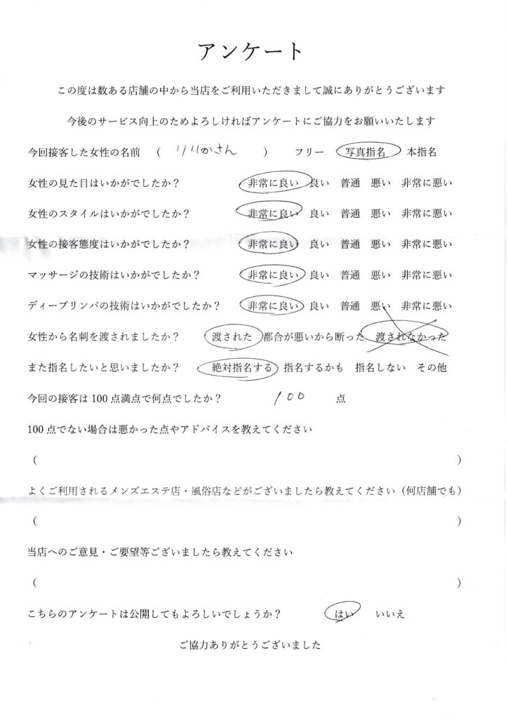 2024年8月29日野田りりかさんアンケート100点いただきました