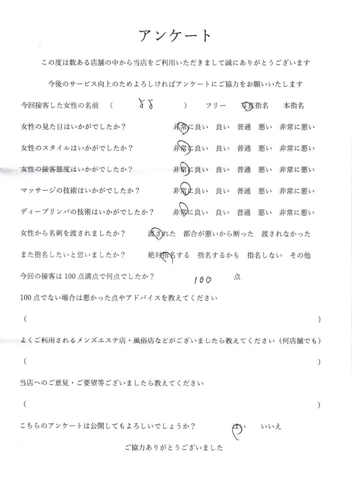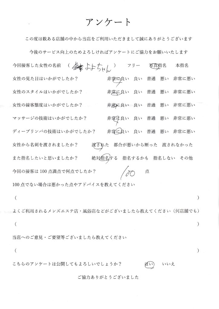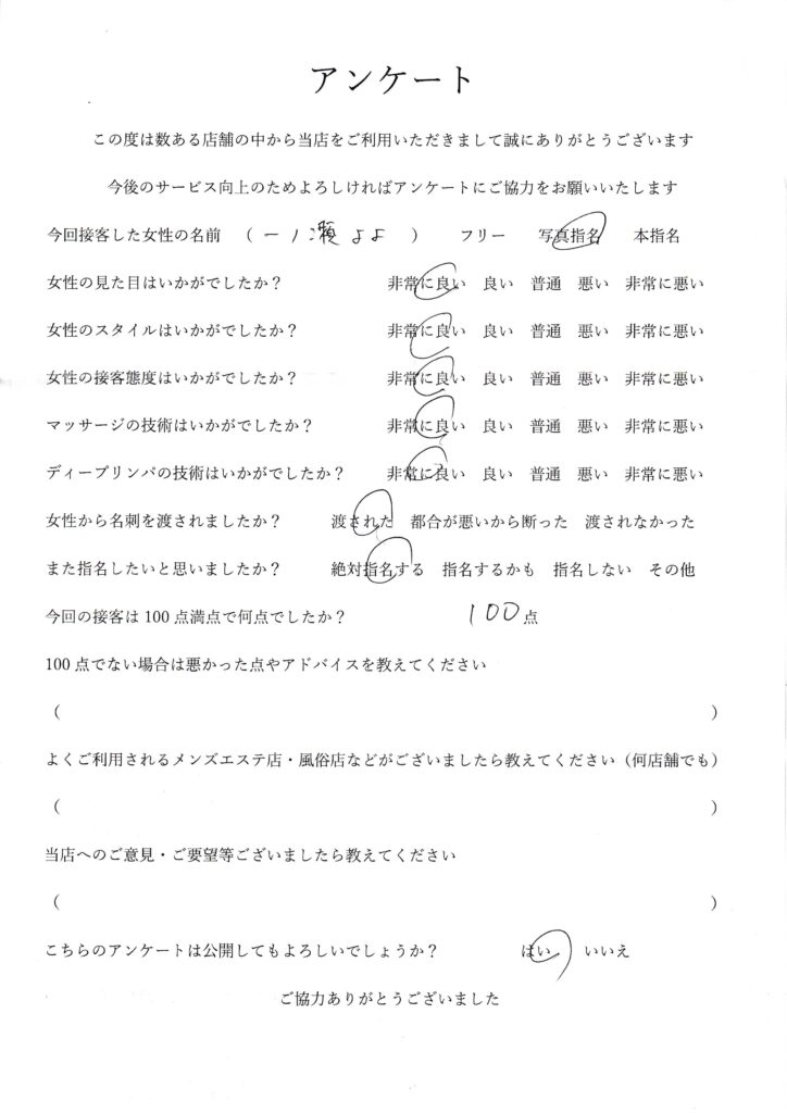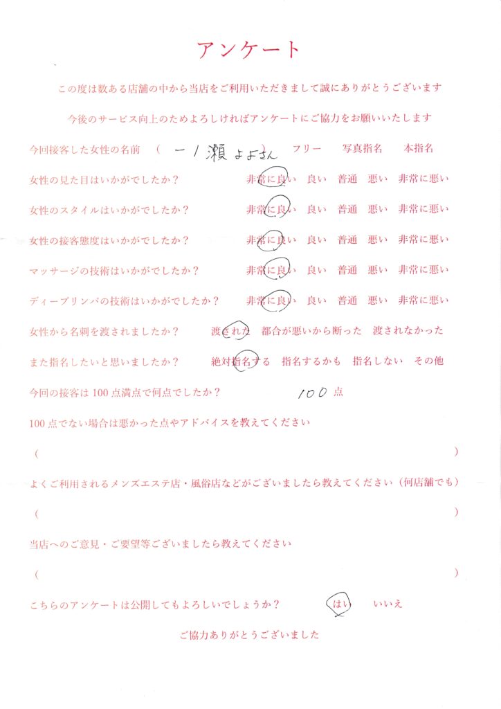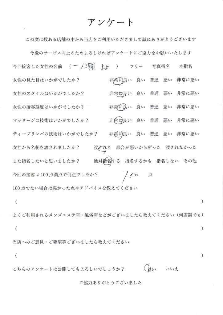2025年11月16日一ノ瀬よよさんアンケート100点いただきました