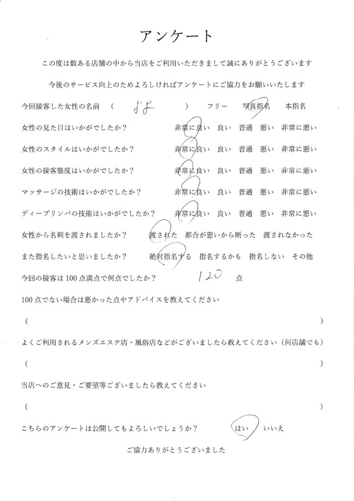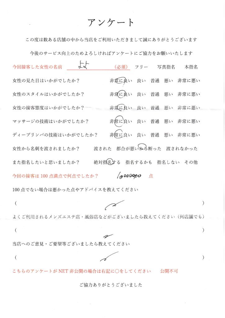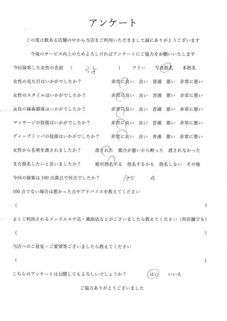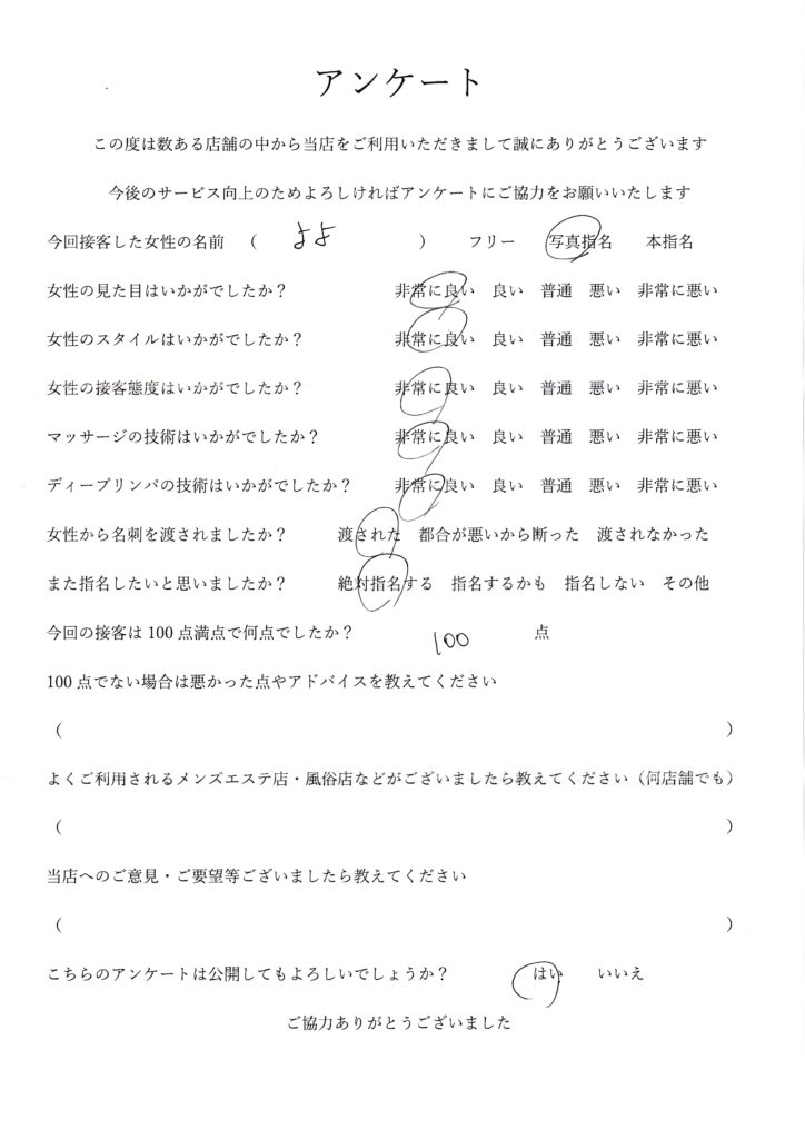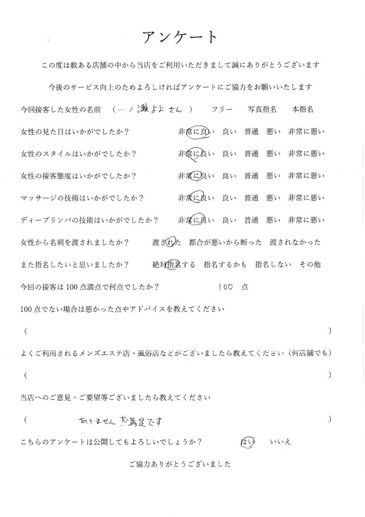 2025年11月16日一ノ瀬よよさんアンケート100点いただきました